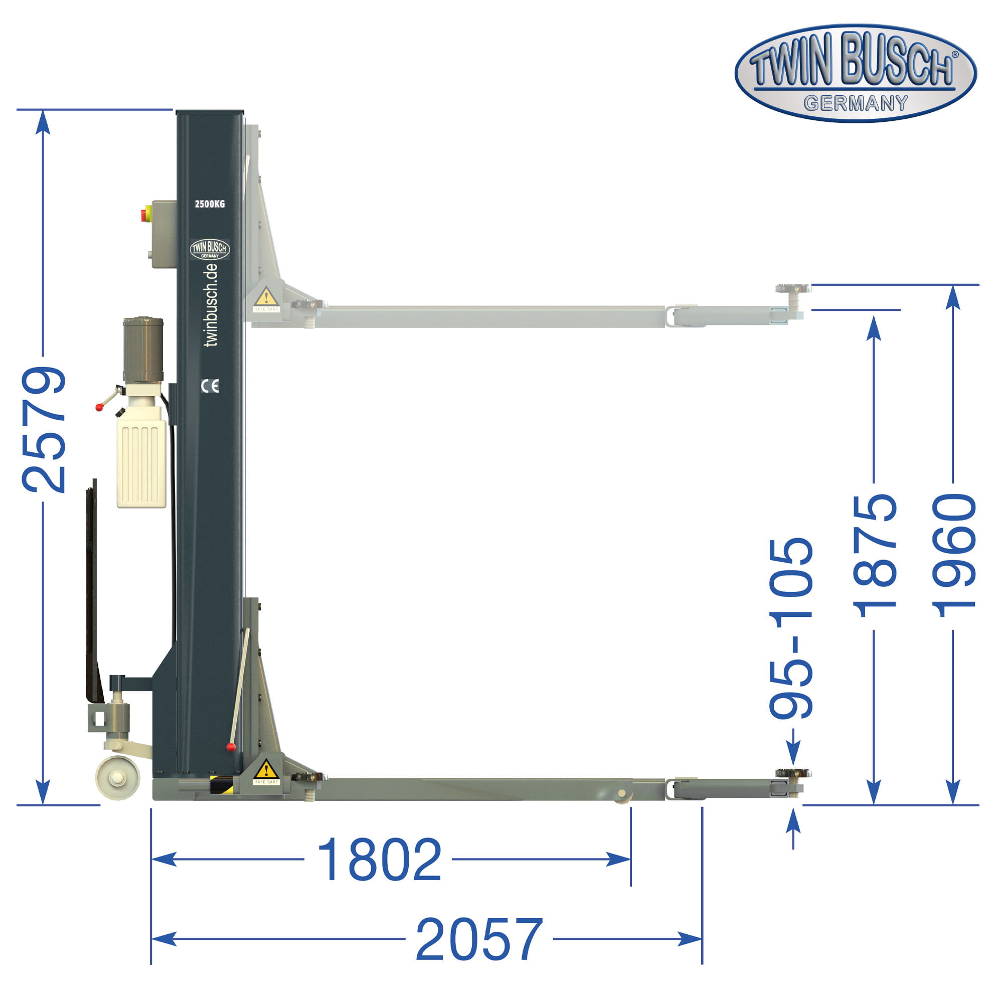Eine der flachsten 1-Säulen-Hebebühnen auf dem Markt. Bietet mit nur 85 mm Rahmenhöhe und einer Einschwenkhöhe von 98 mm ideale Voraussetzungen für Fahrzeuge mit geringer Bodenfreiheit.